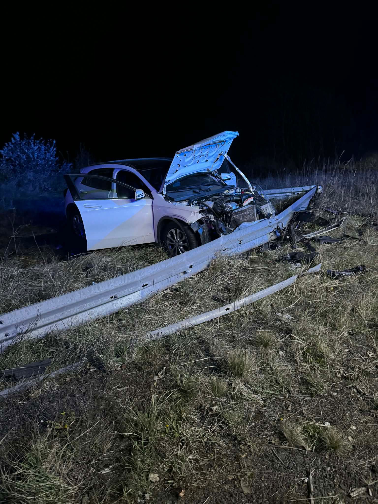 10.04.2026 o godz.20:10 zostaliśmy zadysponowani do wypadku, gdzie kierująca pojazdem wypadła z zakrętu i uderzyła w barierki.
