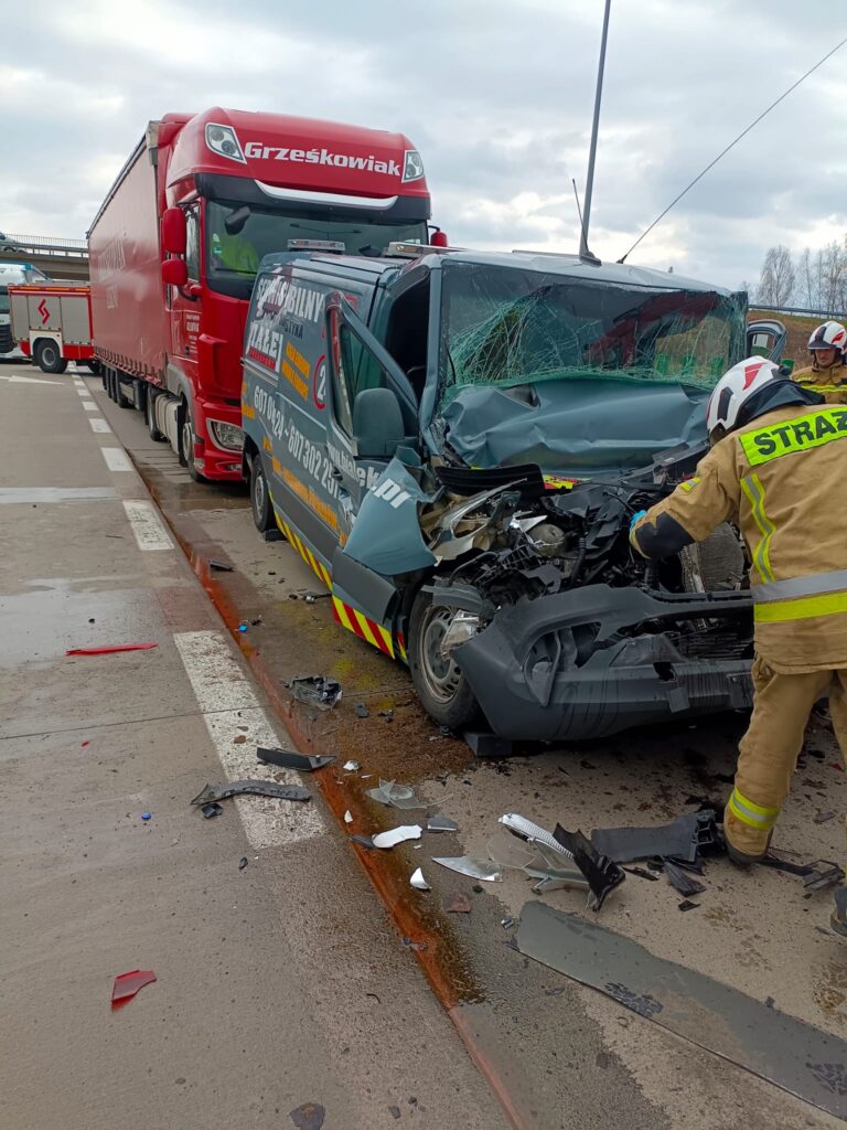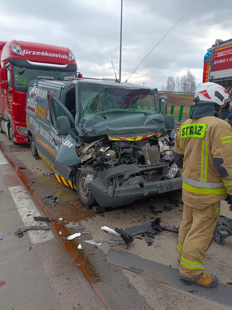 16.03.2026 o godz.12:14 zostaliśmy zadysponowani do wypadku na autostradzie A4, w którym uczestniczyły dwa Samochody TIR oraz Bus, który oczekiwał w kolejce do granicy w kierunku Niemiec.