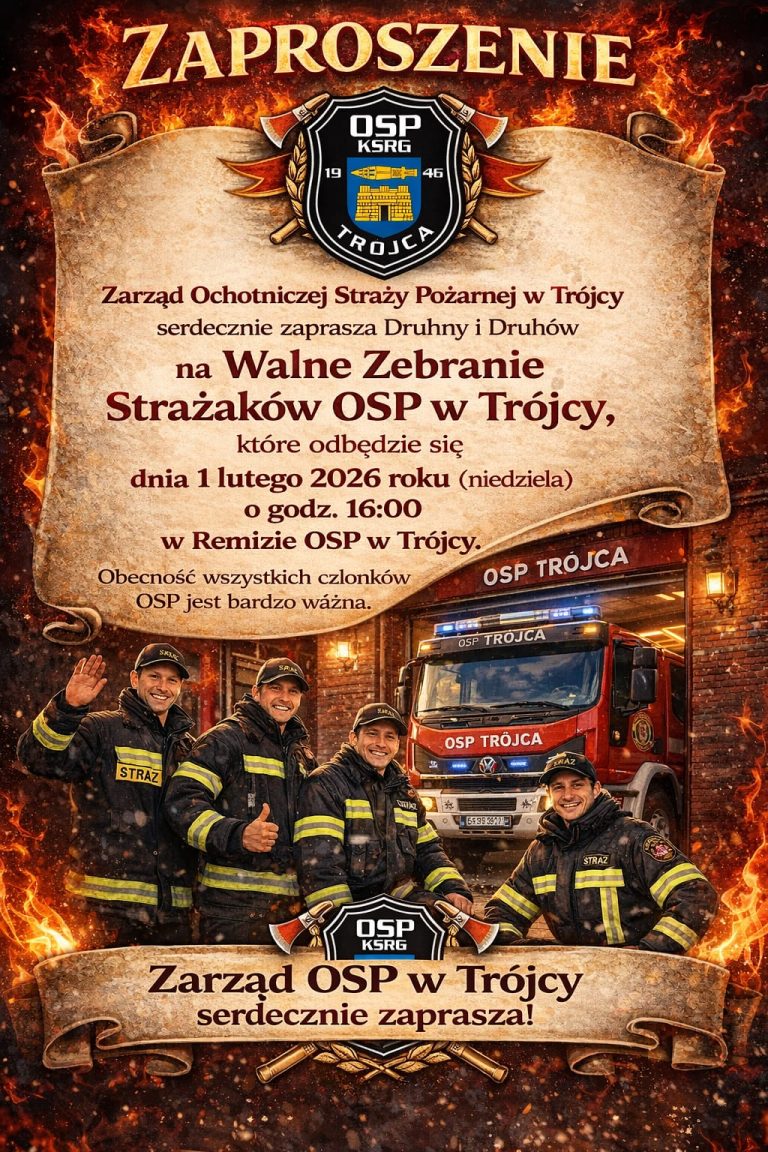 W dniu 01-02-2026 odbyło się walne zebranie sprawozdawczo-wyborcze OSP TRÓJCA. Strażacy ochotnicy podsumowali miniony rok działalności, udzielili absolutorium zarządowi oraz wybrali nowe władze na kolejną kadencję. Zebranie rozpoczął Przes Artur Zadwórny oraz powitał przybyłych gości, w tym przedstawicieli Zarządu Oddziału…