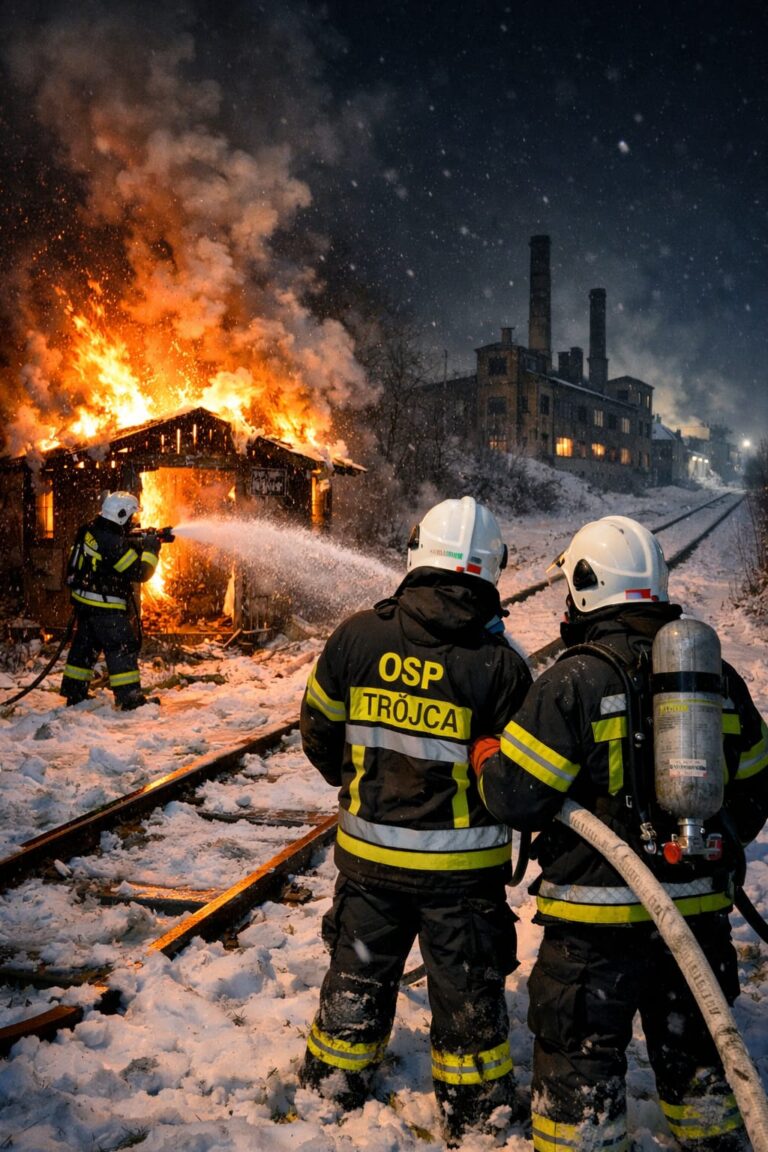 22.02.2026r. o godz.00:01 zostaliśmy zadysponowani do zdarzenia w Zgorzelcu, gdzie na ul. Fabrycznej przy torach pali się altana…. w chwili obecnej ( godz.00:32) trwa akcja gaśnicza…